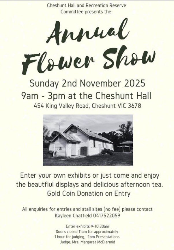 Annual Flower Show 2 November 2025. 9am - 3pm